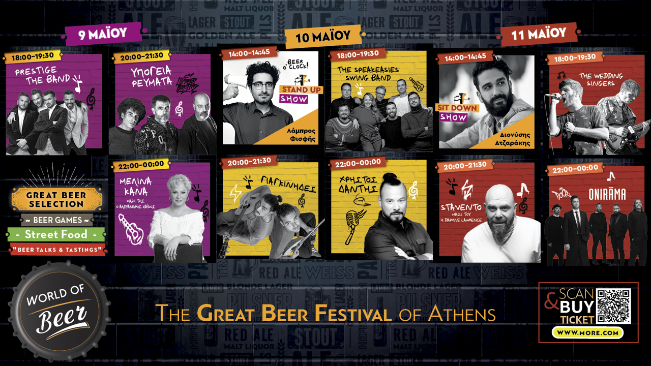 Σου αρέσει η μπίρα και η καλή μουσική; Λατρεύεις το stand up; Θέλεις να πας το κορίτσι σου ή το αγόρι σου σε ένα ραντεβού διαφορετικό από τα άλλα; Αναζητάς νέες προτάσεις διασκέδασης με την παρέα; Ψάχνεις ένα μέρος που θα δοκιμάσεις σπάνιες ετικέτες μπίρας και λαχταριστά street food μαζί; Η απάντηση σε όλα αυτά είναι το WORLD OF BΕΕR FESTIVAL, το οποίο έρχεται για 2η χρονιά, 9-11 Μαΐου 2025, στην Τεχνόπολη Δήμου Αθηναίων! Το ΜΟΝΟ Φεστιβάλ στην Ελλάδα με τόσο μεγάλη ποικιλία σε είδη Μπίρας, το ΜΟΝΟ Φεστιβάλ μπίρας με 9 Συναυλίες! Το μεγαλύτερο Φεστιβάλ Μπίρας στην Ελλάδα!